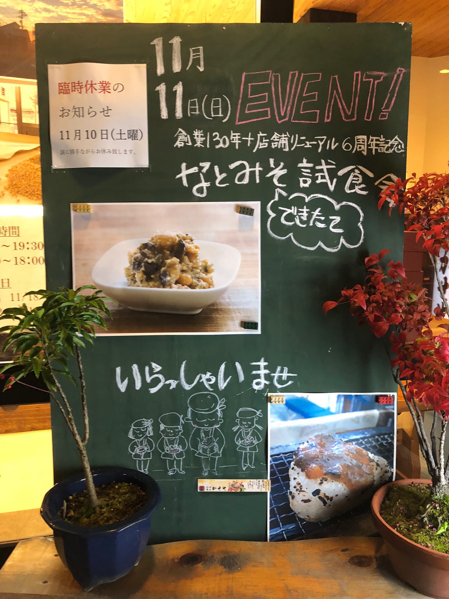 試食ができるイベントのお知らせと臨時休業のお願い